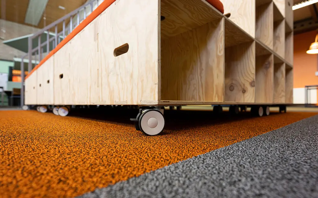 Het kleur- en materiaalgebruik is geïnspireerd op Zaanse elementen in combinatie elementen uit de voetbalwereld.