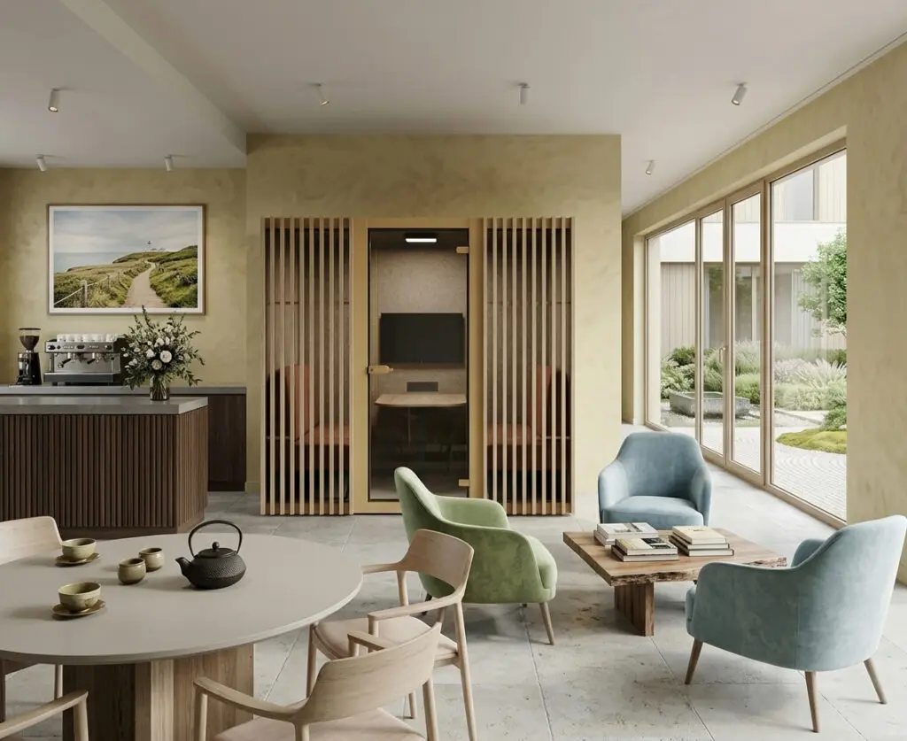Zorgkantoren werken vaak nog in open of gedeelde ruimtes, waar telefoongesprekken en overlegmomenten elkaar snel overlappen. Dat maakt het lastig om vertrouwelijk te communiceren, zonder collega’s te storen of zelf afgeleid te raken.